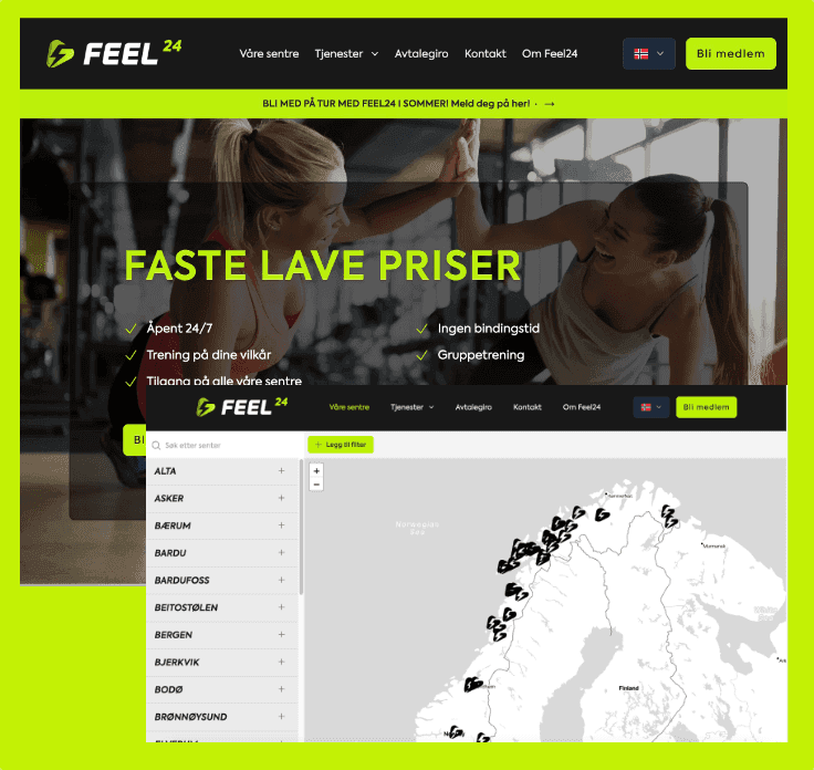 Vi har levert en ny nettside til treningssenterkjeden Feel24 med Next.js og Sanity CMS.